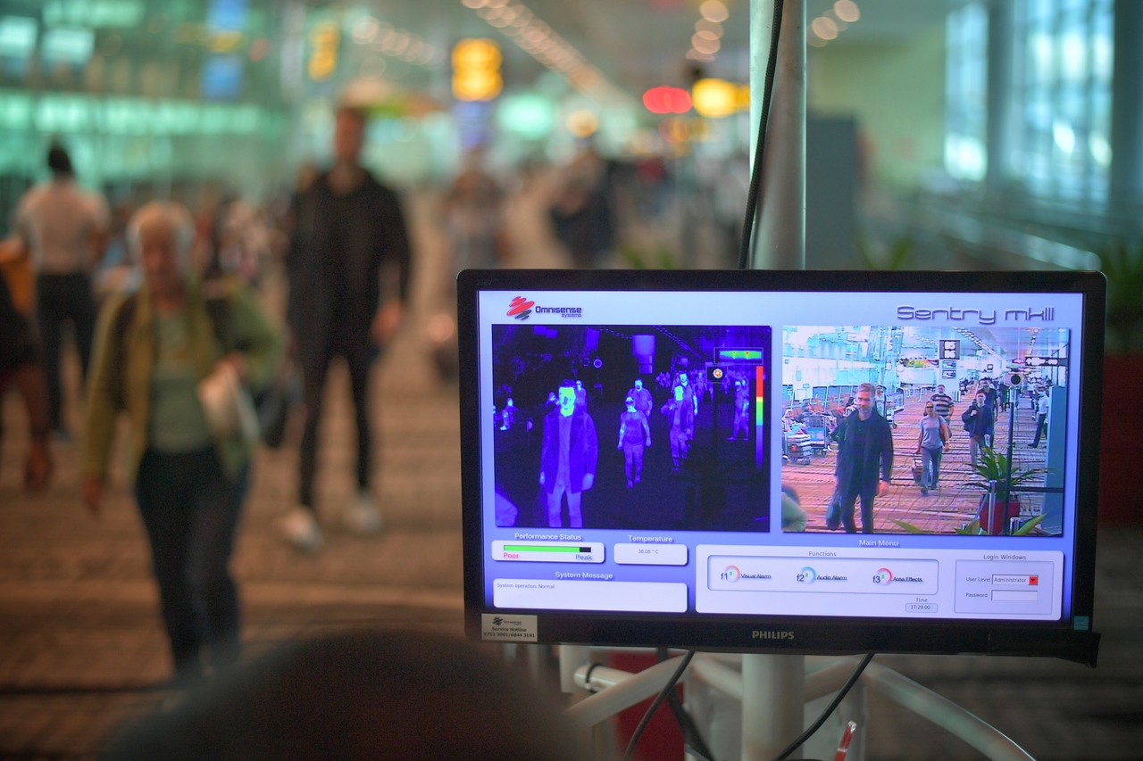 A thermal scanner in the arrival area of Changi Airport Terminal 3 on Feb 14, 2020. On Feb 23, the offender was spotted attempting to leave Singapore, and was warned that he had breached the requirements of his notice and could face penalties. But he still insisted on leaving.