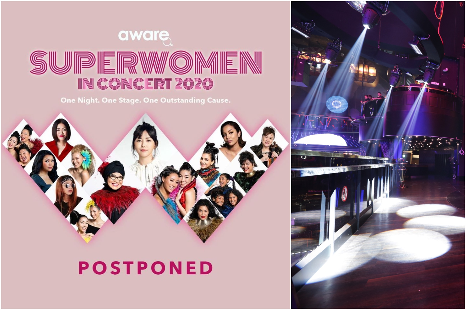 Aware announced the postponement of its Superwomen In Concert 2020, while Marquee Singapore said it would suspend operations until further notice.