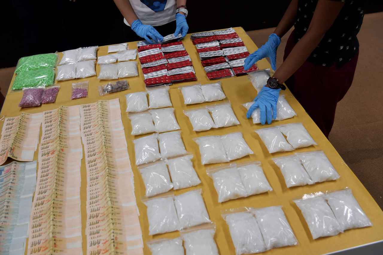 Some of the drugs seized by the Central Narcotics Bureau, on display at its headquarters.