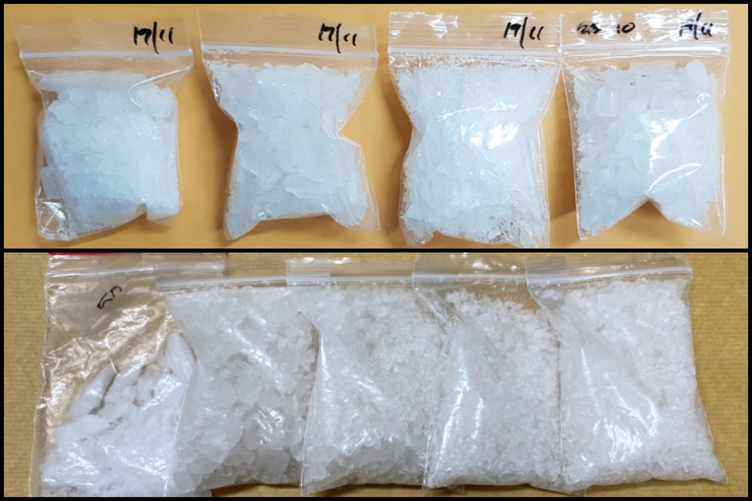 In one of the cases on Wednesday, officers arrested two drug trafficking suspects - a 22-year-old Singaporean woman and a 32-year-old man - at a residential unit in Yishun Avenue 11. A total of 100g of Ice, an Ecstasy tablet and a small amount of green powdery substances suspected to contain controlled drugs were found in the unit.