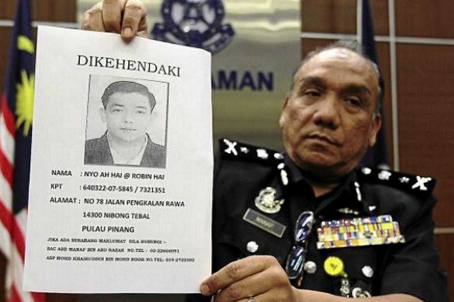 A Malaysian police officer showing a picture of Nyo Ah Hai.