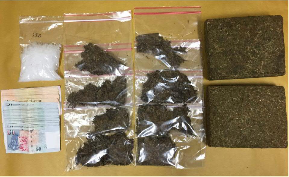 The haul consisted of about 2.4kg of cannabis, 150g of Ice and 105 Ecstasy tablets, CNB said in a press release on Wednesday.