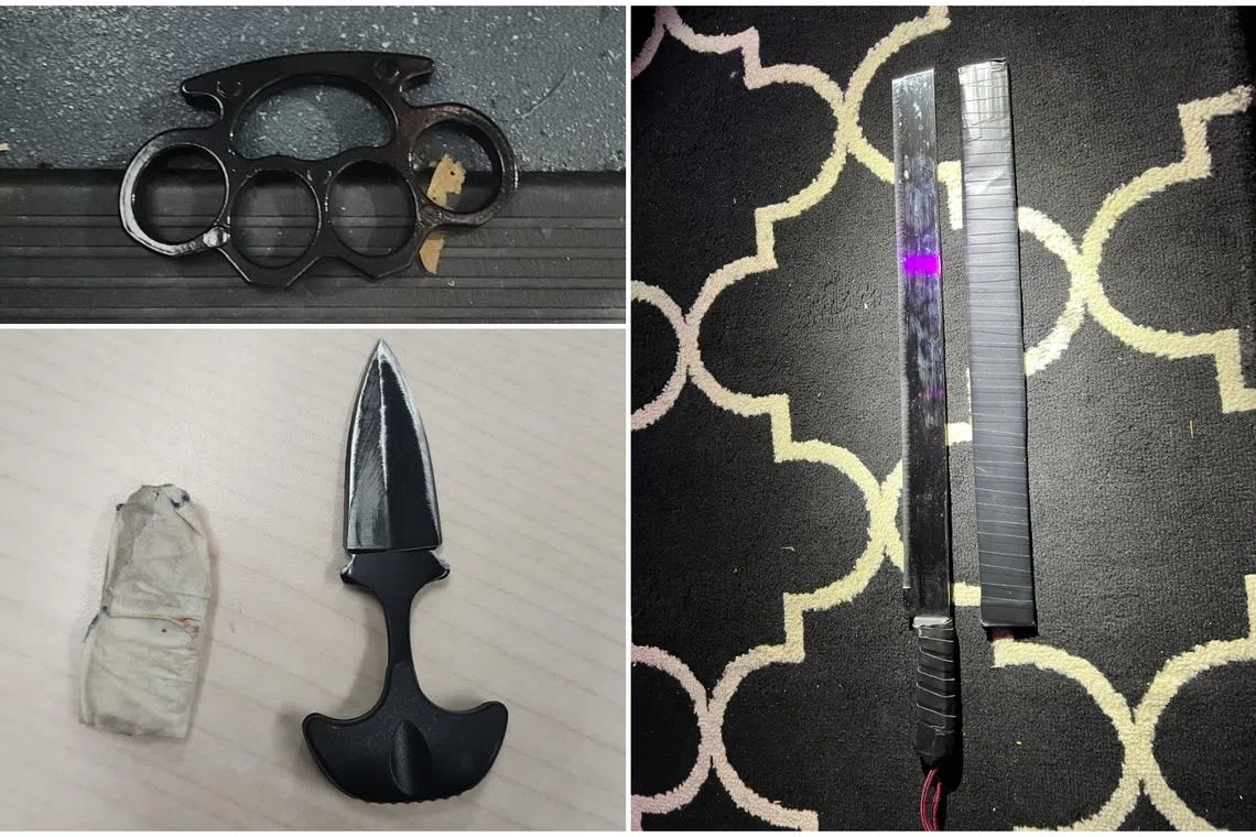 A push dagger, a knuckle duster and a knife were seized as case exhibits, according to the police.