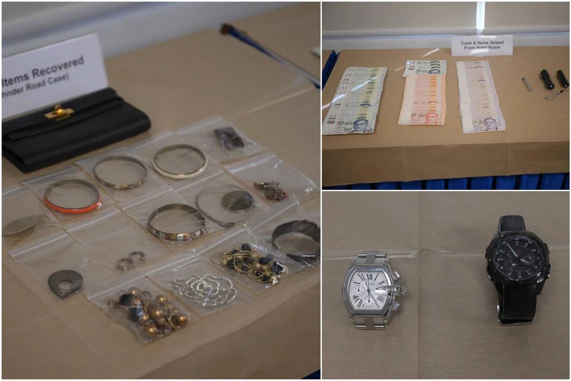 Police recovered two watches worth about $8,950 in total, a branded pouch worth about $5,000, about $3,570 in cash and an assortment of jewellery.