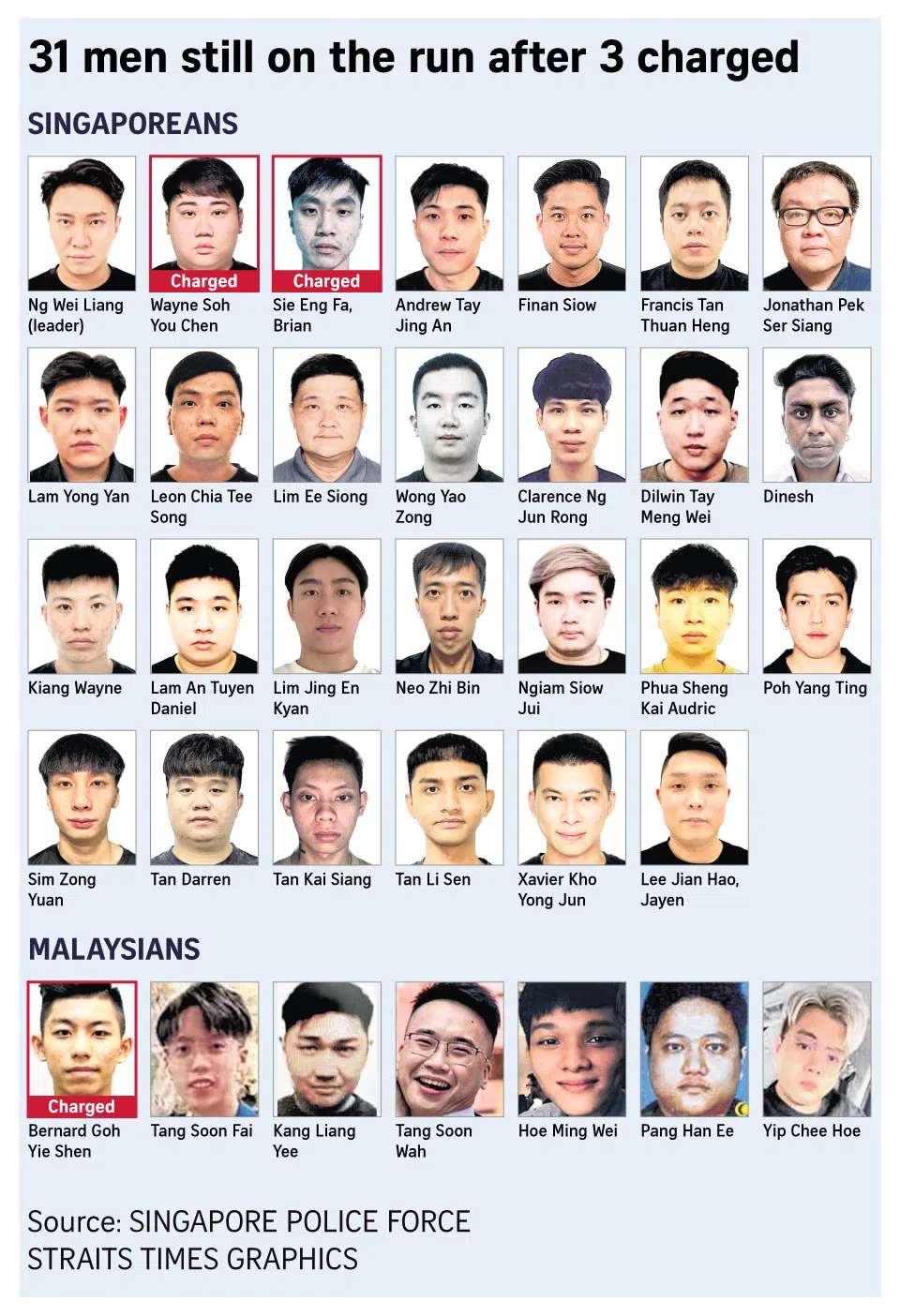 This leaves 31 remaining fugitives wanted by the Singapore police – comprising 25 Singaporeans and six Malaysians – for their alleged links to an organised crime group targeting Singapore victims.