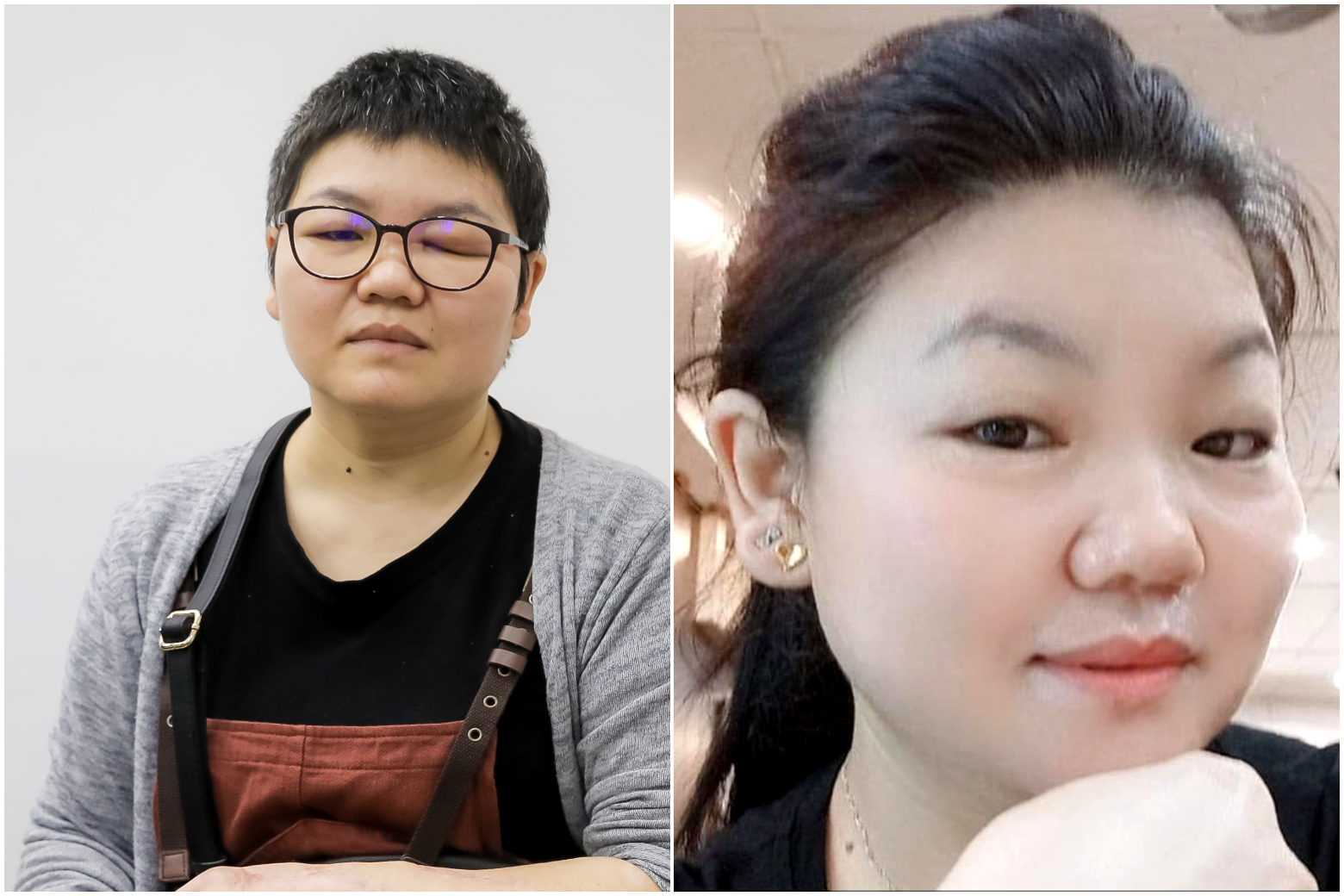 Ms Han Hongli before (right) and after (left) the attack. She was discharged on May 19 and is recovering in the community.