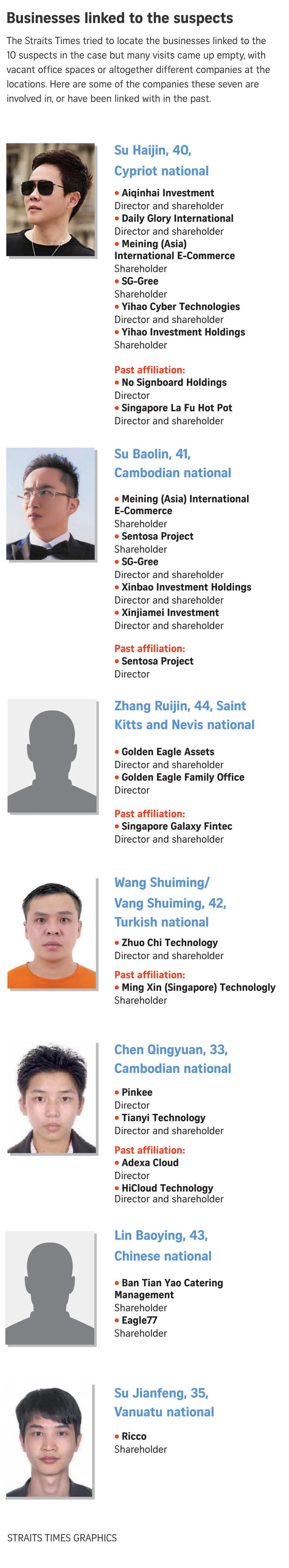 SINGAPORE - The listing of a Singapore resident as director, secretary and shareholder of 185 companies here has sparked concerns, after it emerged that several of the firms were linked to three of the 10 money laundering suspects arrested on Aug 15 and subsequently charged.