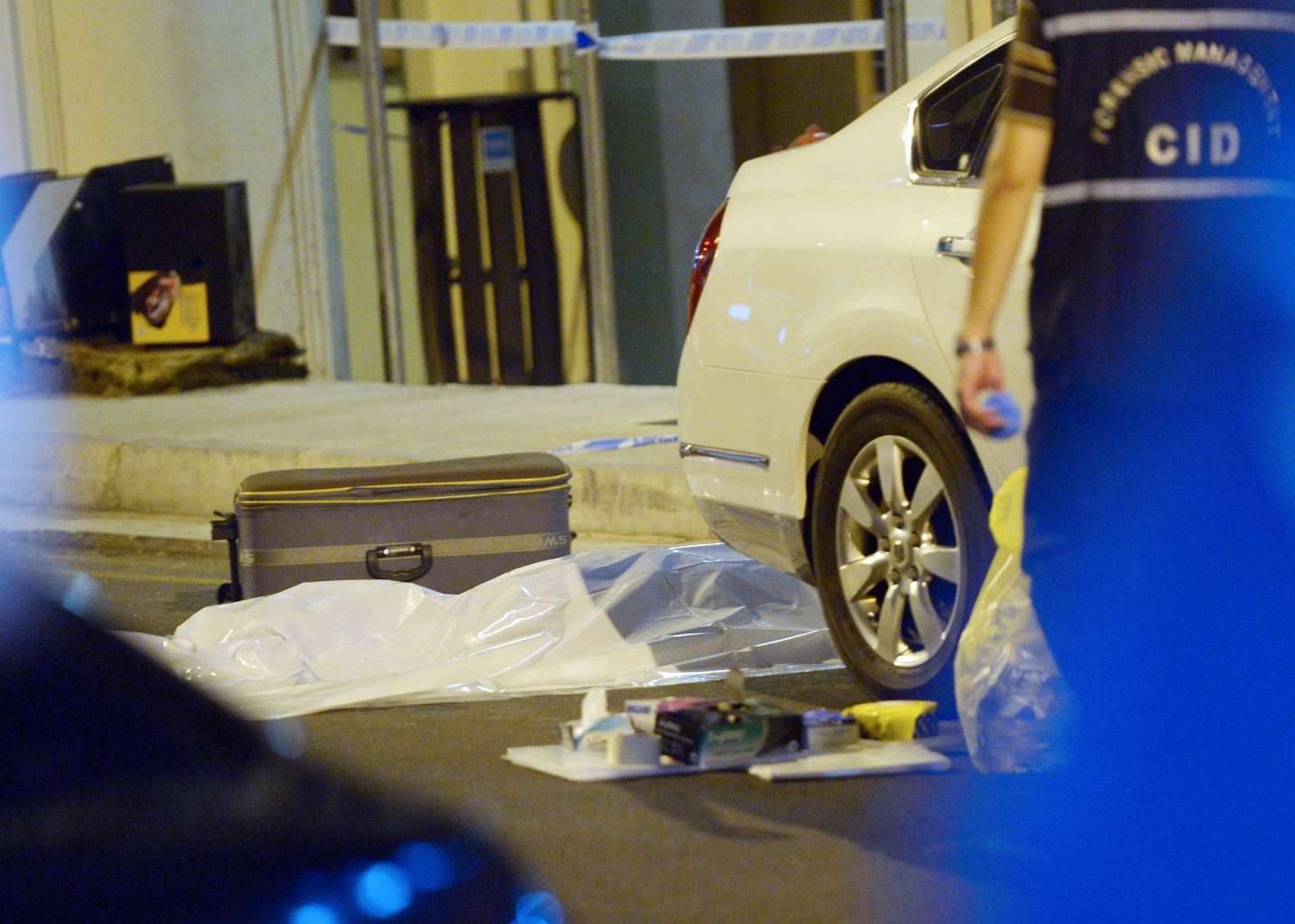 Officers from the CID at the scene where the body of a man was found stuffed inside a suitcase, along Syed Alwi Road, on June 11, 2014.