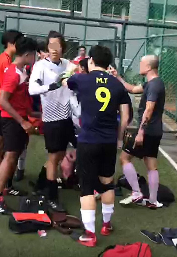The referee for the match, a member of the Football Referees' Association of Singapore, told Channel NewsAsia that a fracas broke out after a player executed a "flying kick" on an opponent during the game.