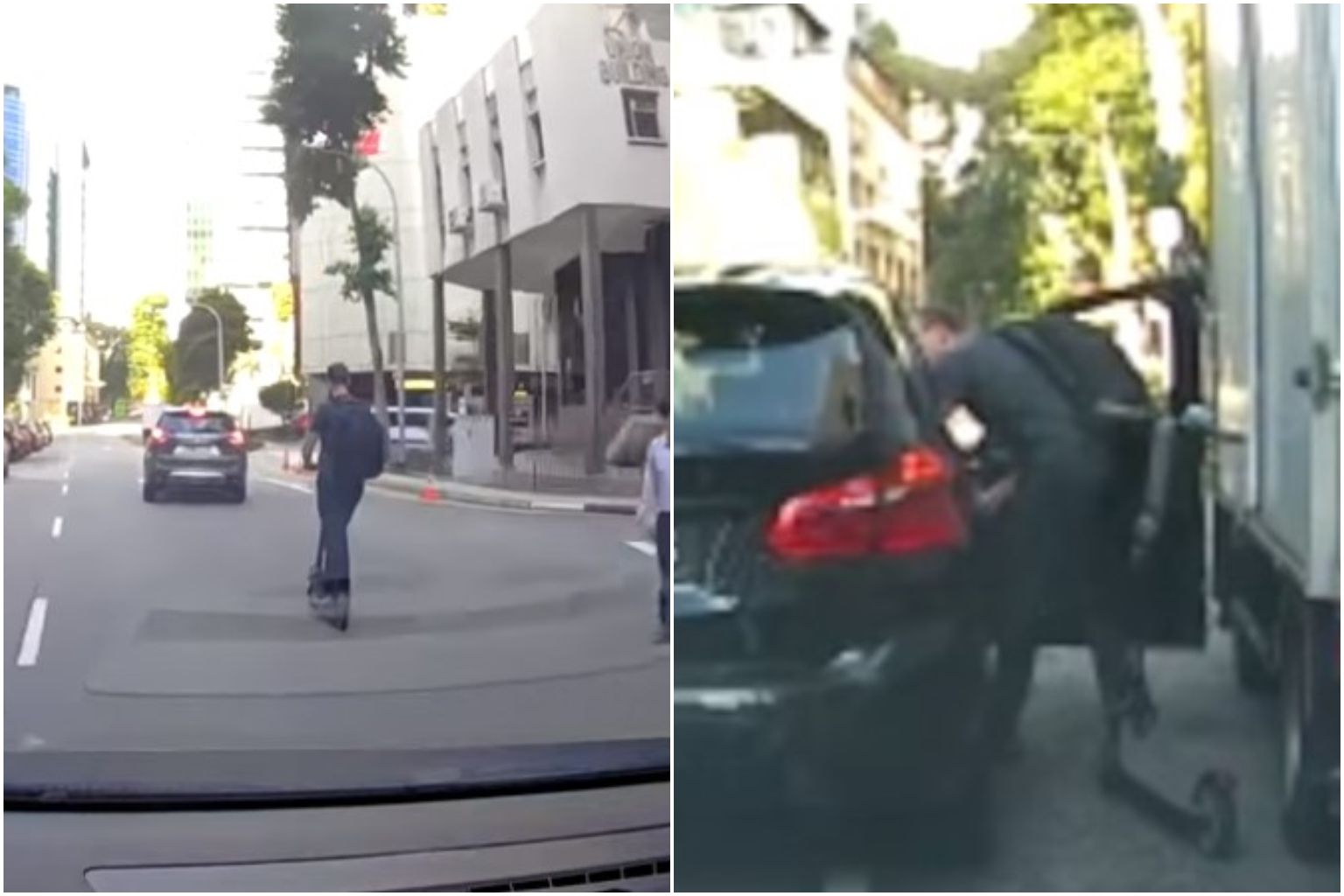 The clip, taken from the car's dashboard camera, shows the vehicle overtaking the PMD user riding in the rightmost lane, before a banging sound is heard.