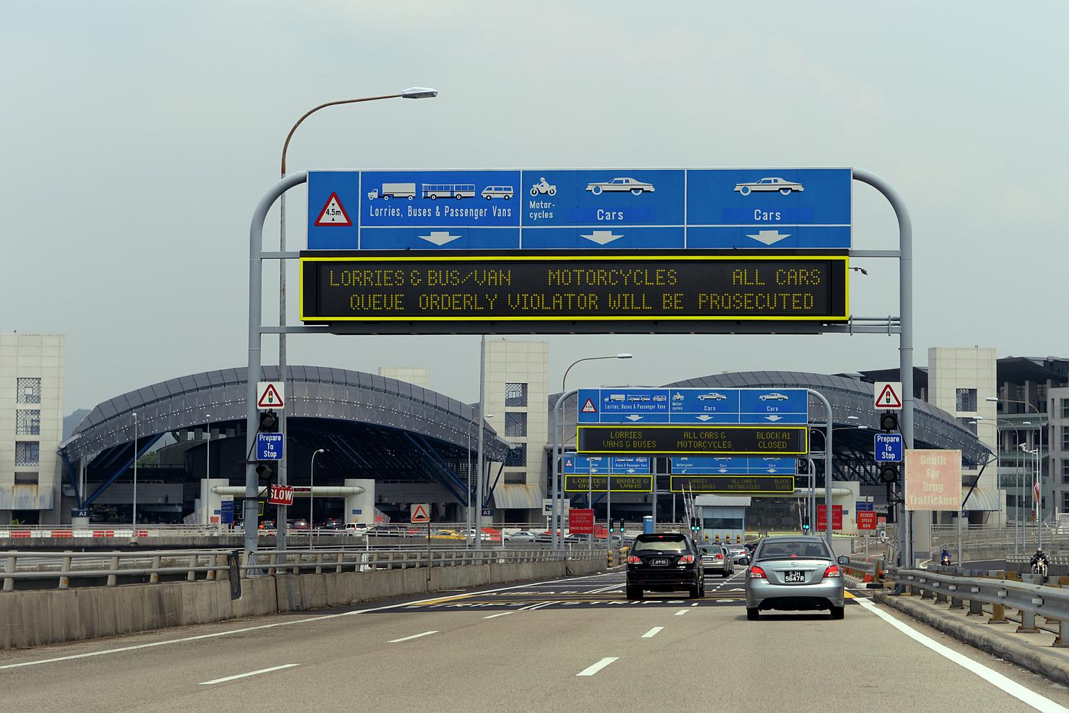 The Singapore Immigrations and Customs checkpoint at Tuas Second Link, as seen from Johor.