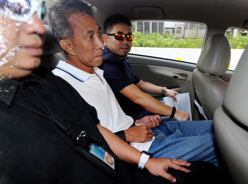 St Hilda's Church caretaker Yeo Liang Chai arriving at the State Courts in a police car on April 18, 2017.
