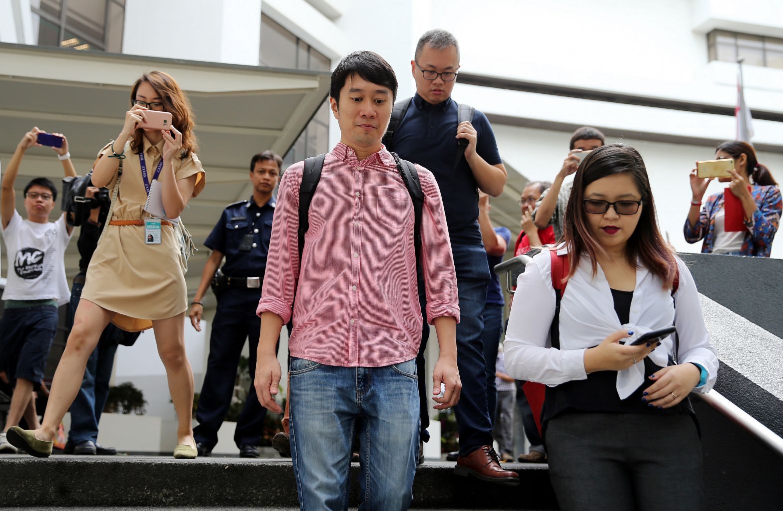 On Wednesday, civil rights activist Jolovan Wham Kwok Han (centre) was charged with seven offences including one count of vandalism.