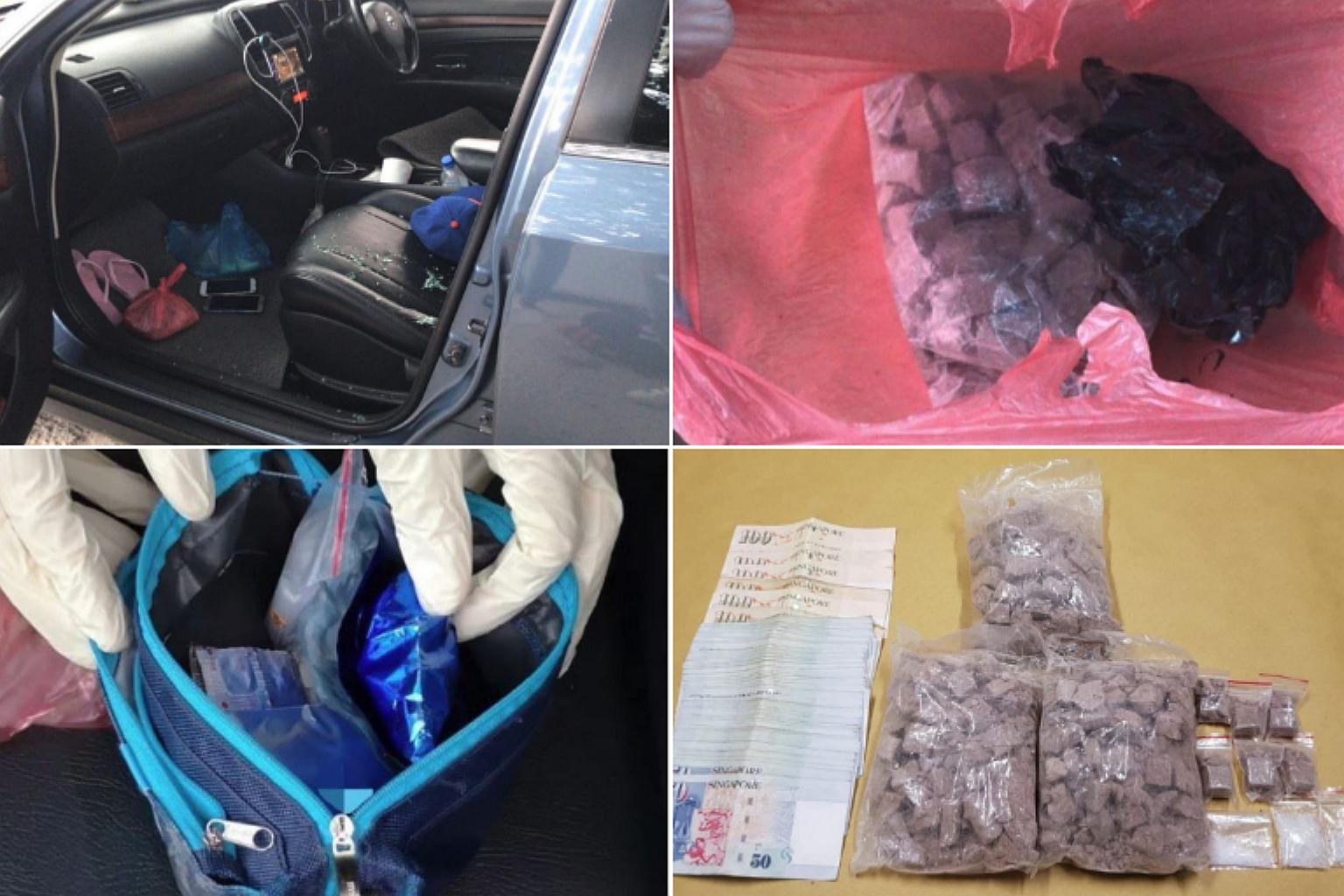 Shortly after, CNB officers moved to arrest the individuals involved. They found about 477g of heroin in a plastic bag on the front passenger seat floorboard of the Nissan. A 48-year-old male passenger in the Nissan was also found to have about 38g of heroin and a small amount of Ice, a street name for methamphetamine, in his pocket.