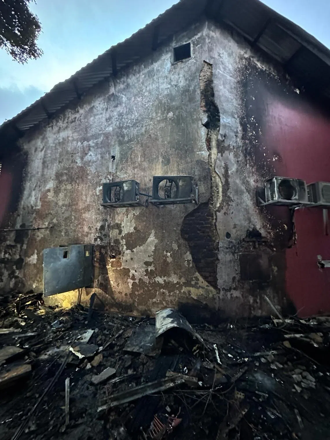 Its post was accompanied by photos of the side of its building, which was almost completely charred.