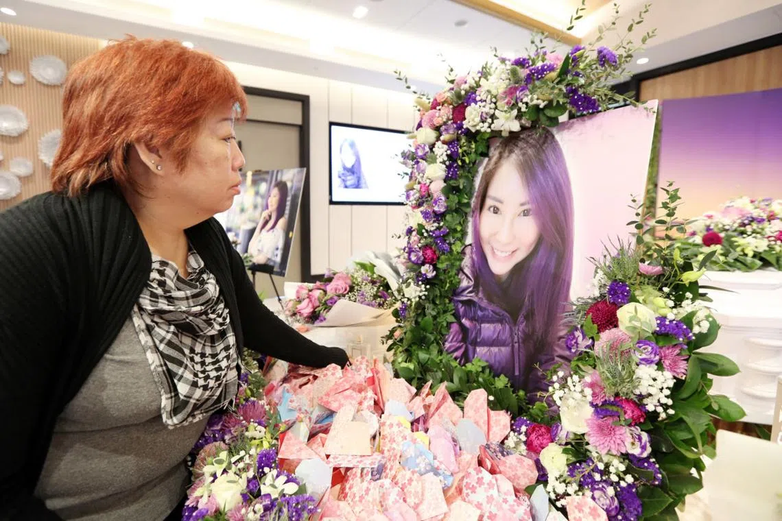 Ms Lau Li Ting’s mother at the wake. The prosecution said that Chan Bingyi administered the “dangerous substance” to Ms Lau at “too high a concentration and too quickly” at a clinic called Revival Medical & Aesthetics Centre in Bras Basah Road on March 8, 2019.