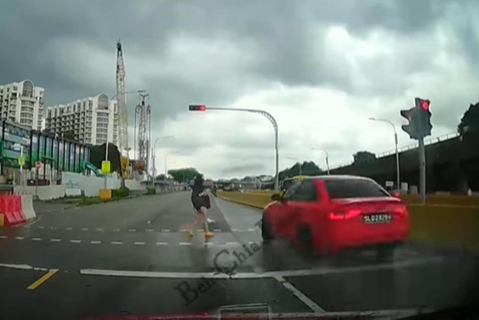 On Dec 30 at 3.30pm, the police were alerted to a video showing a car that had purportedly failed to comply with the red-light signal at a pedestrian crossing in Lentor Avenue. The car almost hit a pedestrian who was crossing the road at the time.
