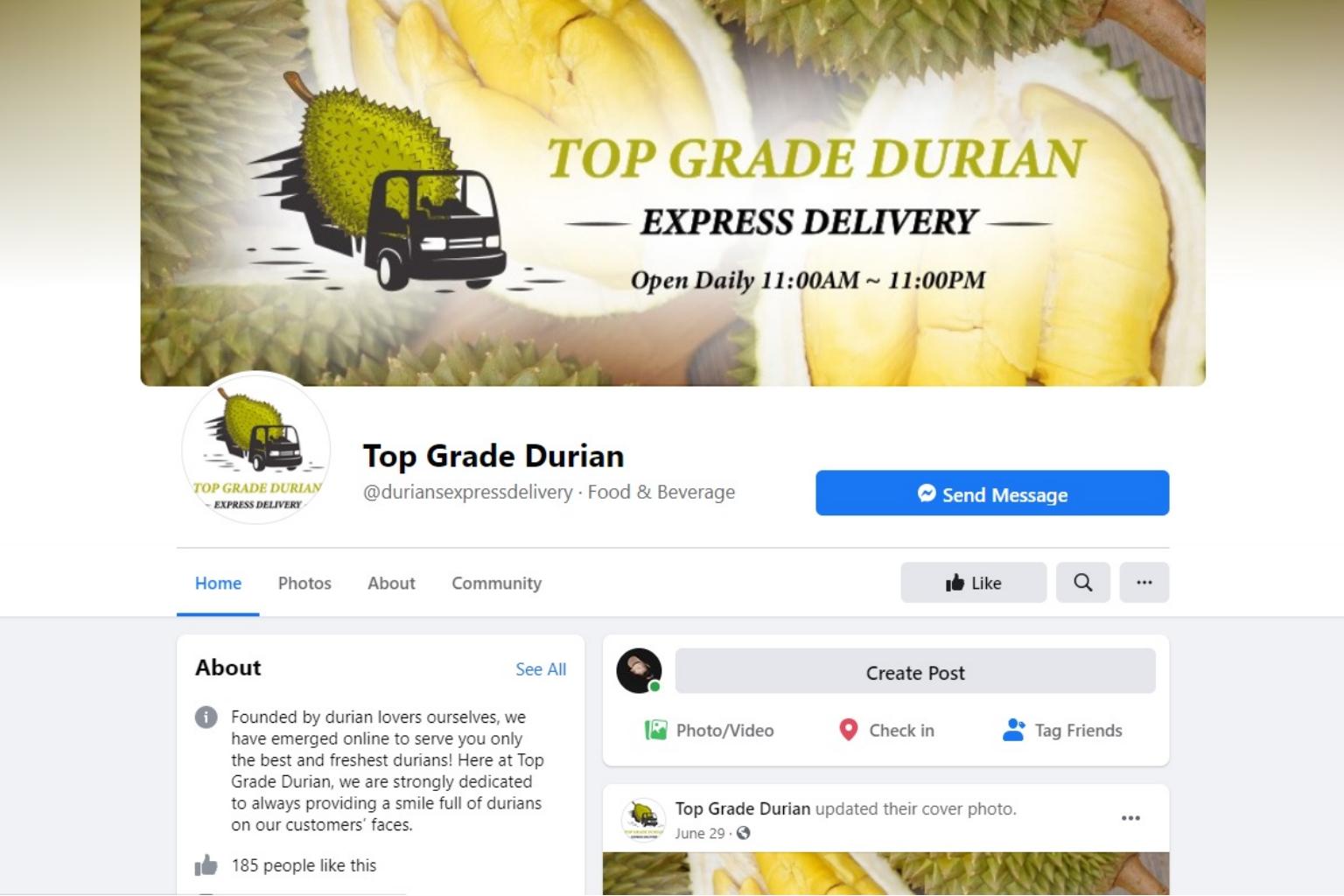Most of the customers said they had seen Instagram and Facebook posts by "Top Grade Durian" that offered express deliveries.