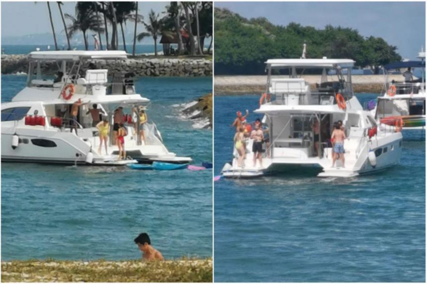 The yacht was in waters off Lazarus Island when onlookers spotted the group.