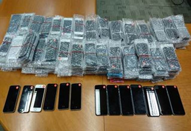Counterfeit mobile phones seized in a 10-hour raid on April 11, 2017.