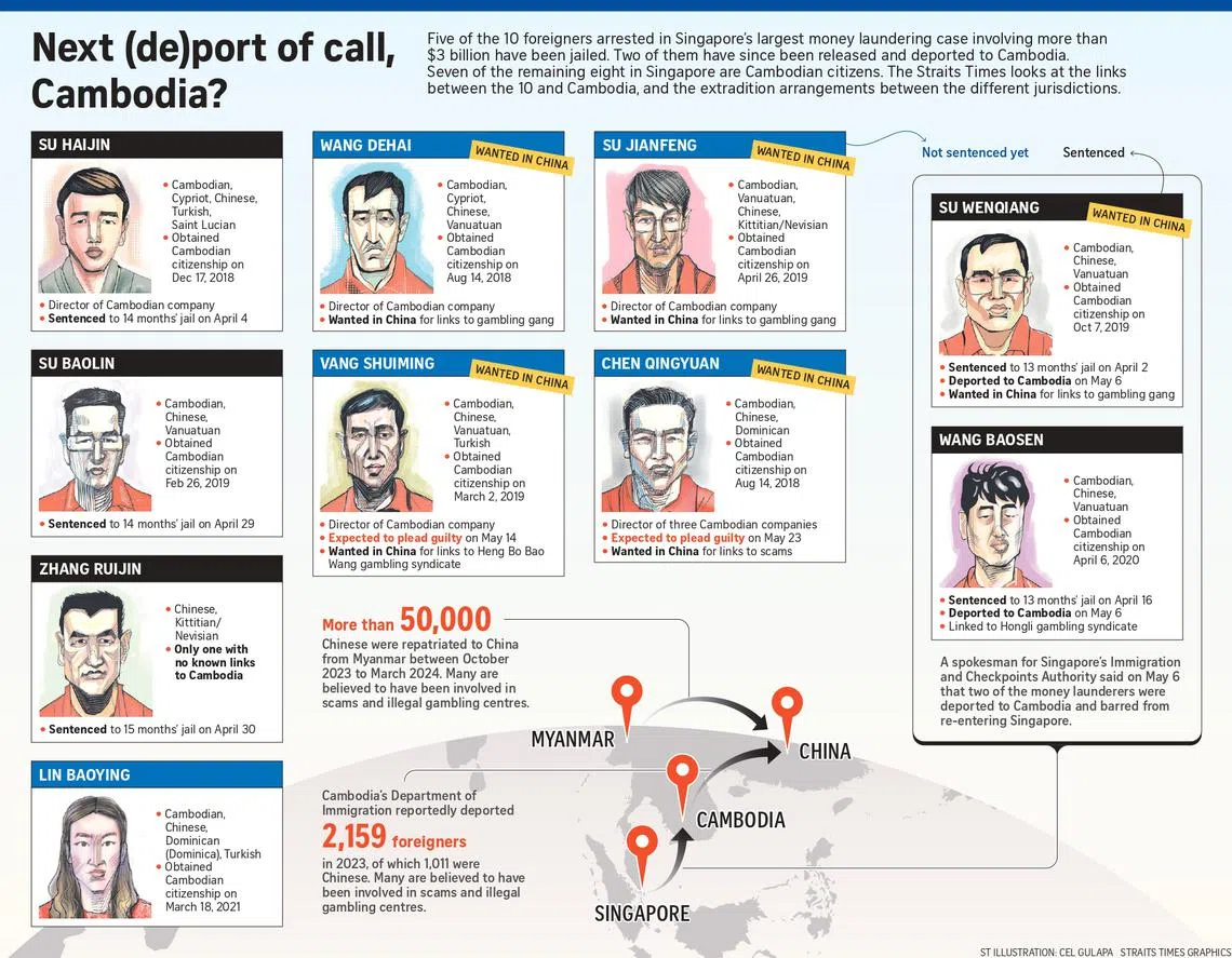 He said that where individuals are deported to would depend on the passport they hold. Su had passports from China, Cambodia and Vanuatu when he was arrested in Singapore.