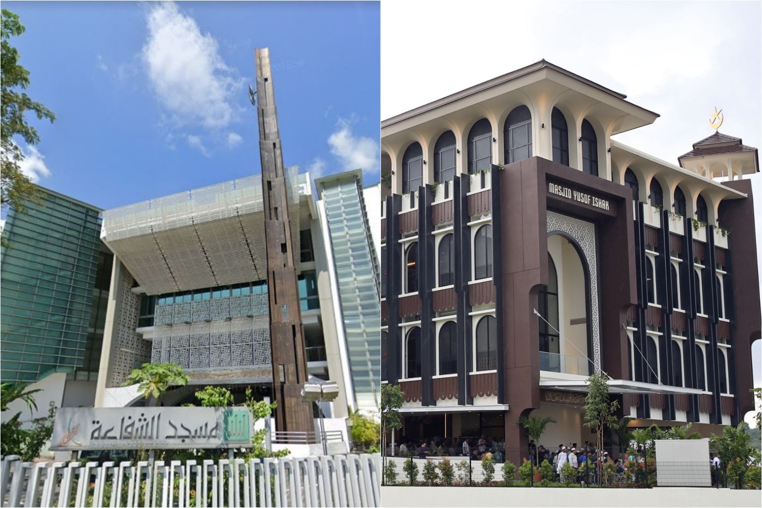 The youth had chosen Assyafaah Mosque in Sembawang (left) and Yusof Ishak Mosque in Woodlands as his targets. PHOTOS: SCREENGRAB FROM GOOGLE MAPS, ST FILE