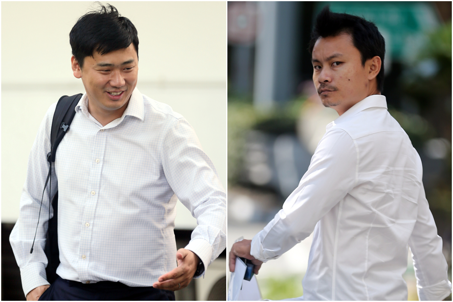 Neuron Mobility's chief executive officer Zachary Wang Zizi (left) and e-scooter retailer Samuel Tan Woon Yeow of Synergy Scooters appeared in court on Aug 1, 2019.