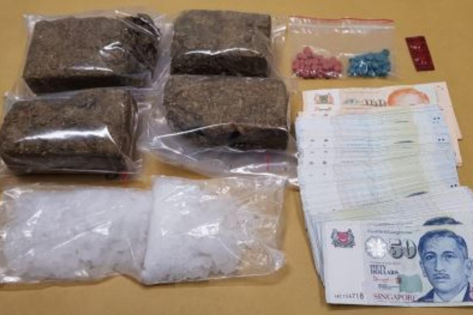 Narcotics officers raided his residential unit in Teck Whye Avenue, where 80 Ecstasy tablets, three Erimin-5 tablets and about 2g of Ice were recovered.