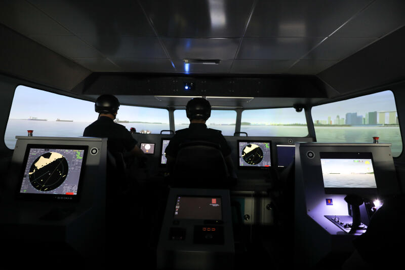 Inspector (Insp) James (not his real name), a member of the PCG's elite Special Task Squadron, said the simulation's screen graphics recreate what they actually see in Singapore's waters, and that the platform is "very dynamic" and close to what they experience at sea.