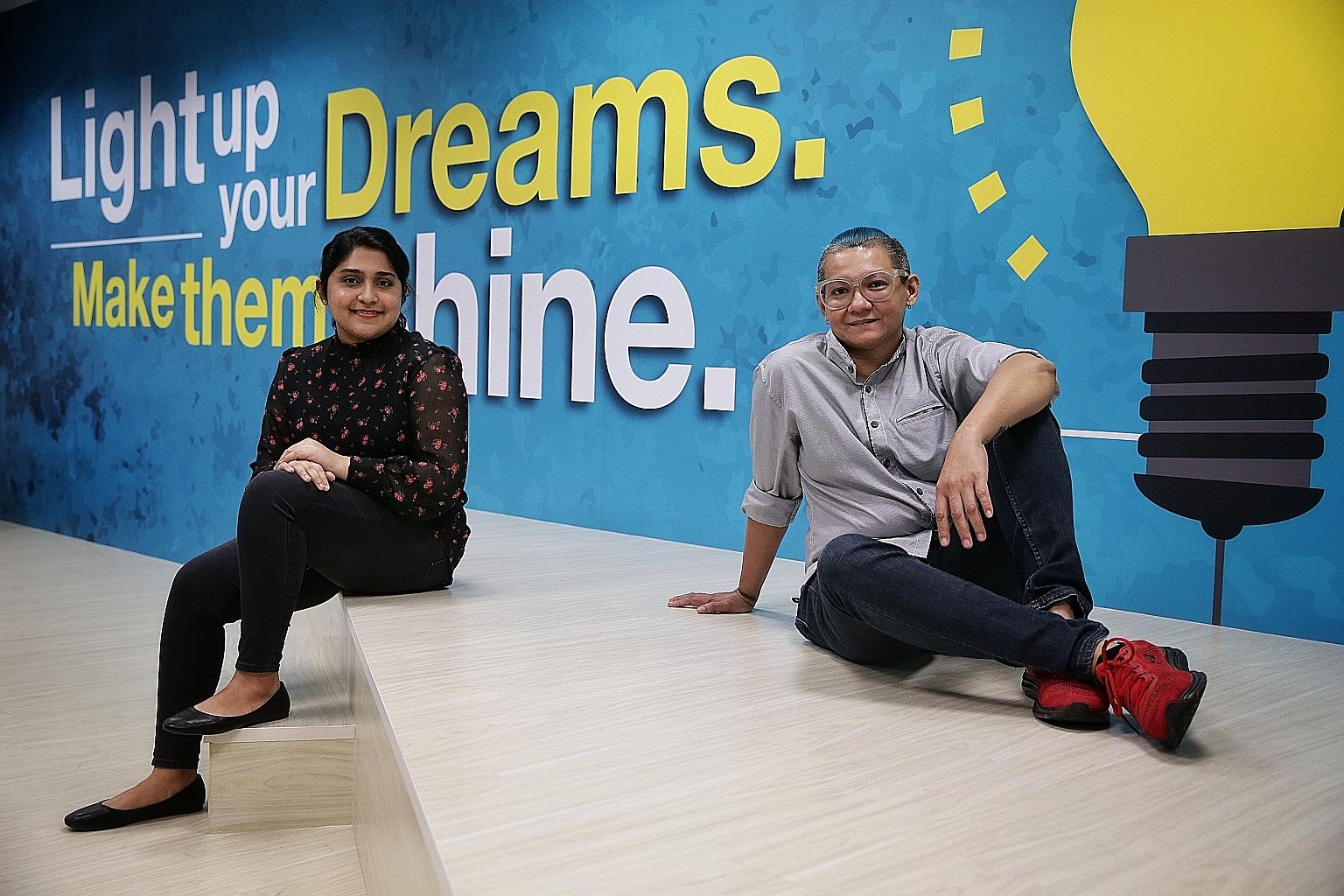 Former offender Sabrina Chong Abdullah (right), 43, and her case worker Halimatus Sa'adiah Numan, 26, at the Community Action for the Rehabilitation of Ex-Offenders Network's 20th anniversary event yesterday.