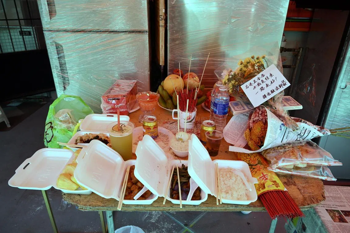 An altar set up behind a shop unit at 210 Hougang Street 21 on Dec 11.