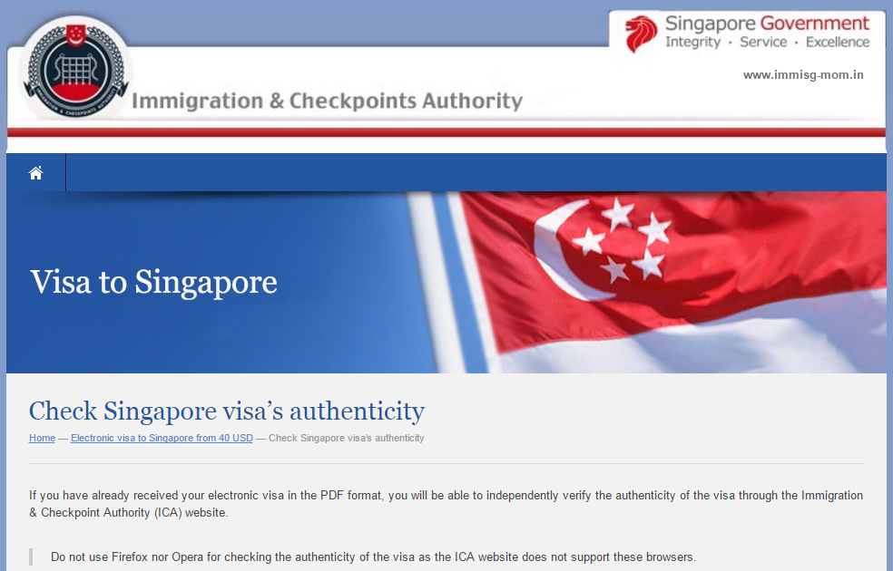Members of the public should use only the official ICA website at www.ica.gov.sg for all informational and transactional needs concerning immigration matters.