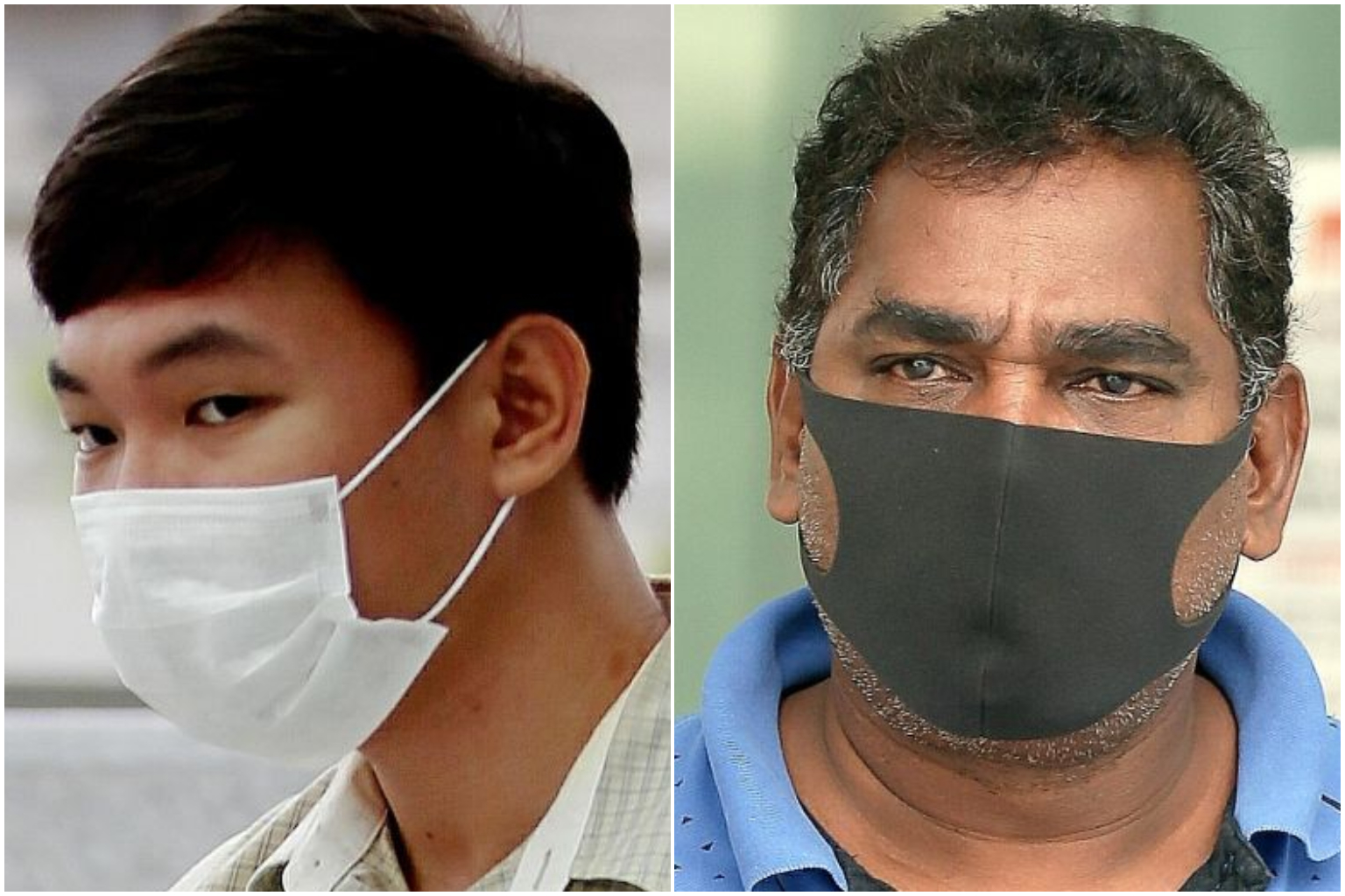 Alan Tham Xiang Sheng (left) is the first person to be convicted for breaching a stay-home notice, while Palanivelu Ramasamy was served with an SHN but allegedly breached it to deliver newspapers on March 30.