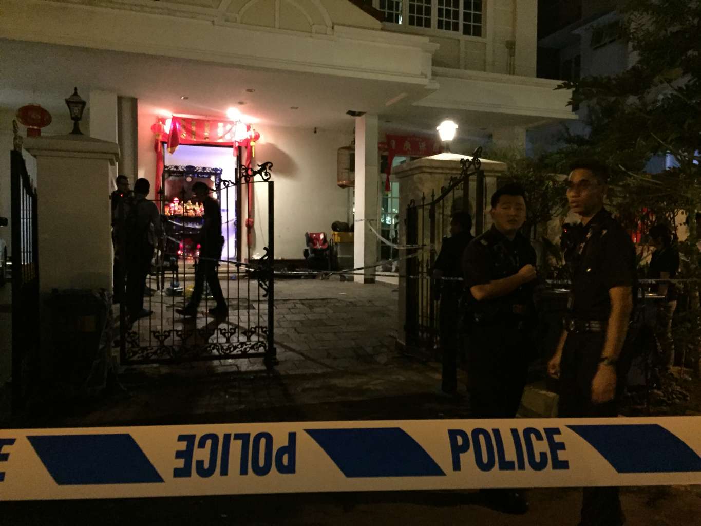 Police officers investigating the scene of an alleged stabbing at Telok Kurau on June 7, 2016.