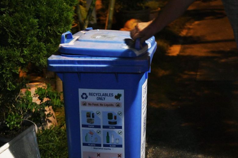 "He heard a strange noise coming from the recycling bin, and asked some of us for help to check it out," said Mr Lew.