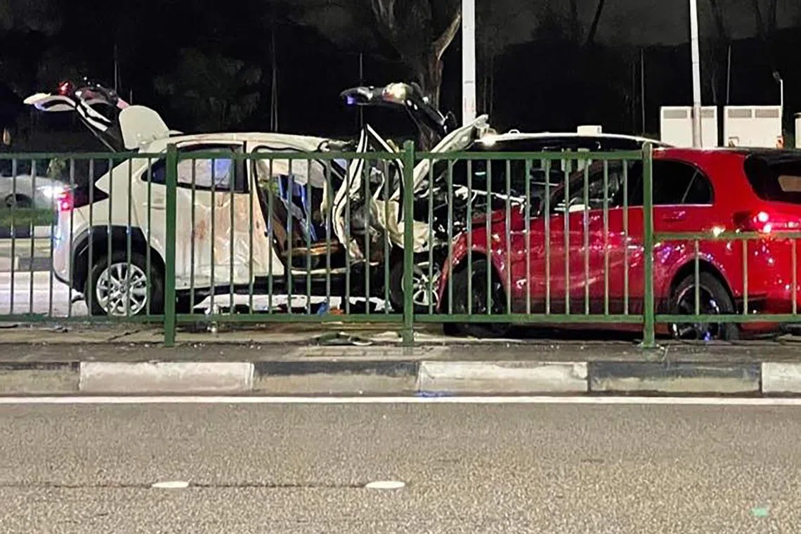 DPP Lim said the car was travelling at between 92km and 108kmh when it ploughed into a centre divider. It struck the right side of the car driven by the Gojek driver, which had stopped at the junction due to a red light. He had two passengers.