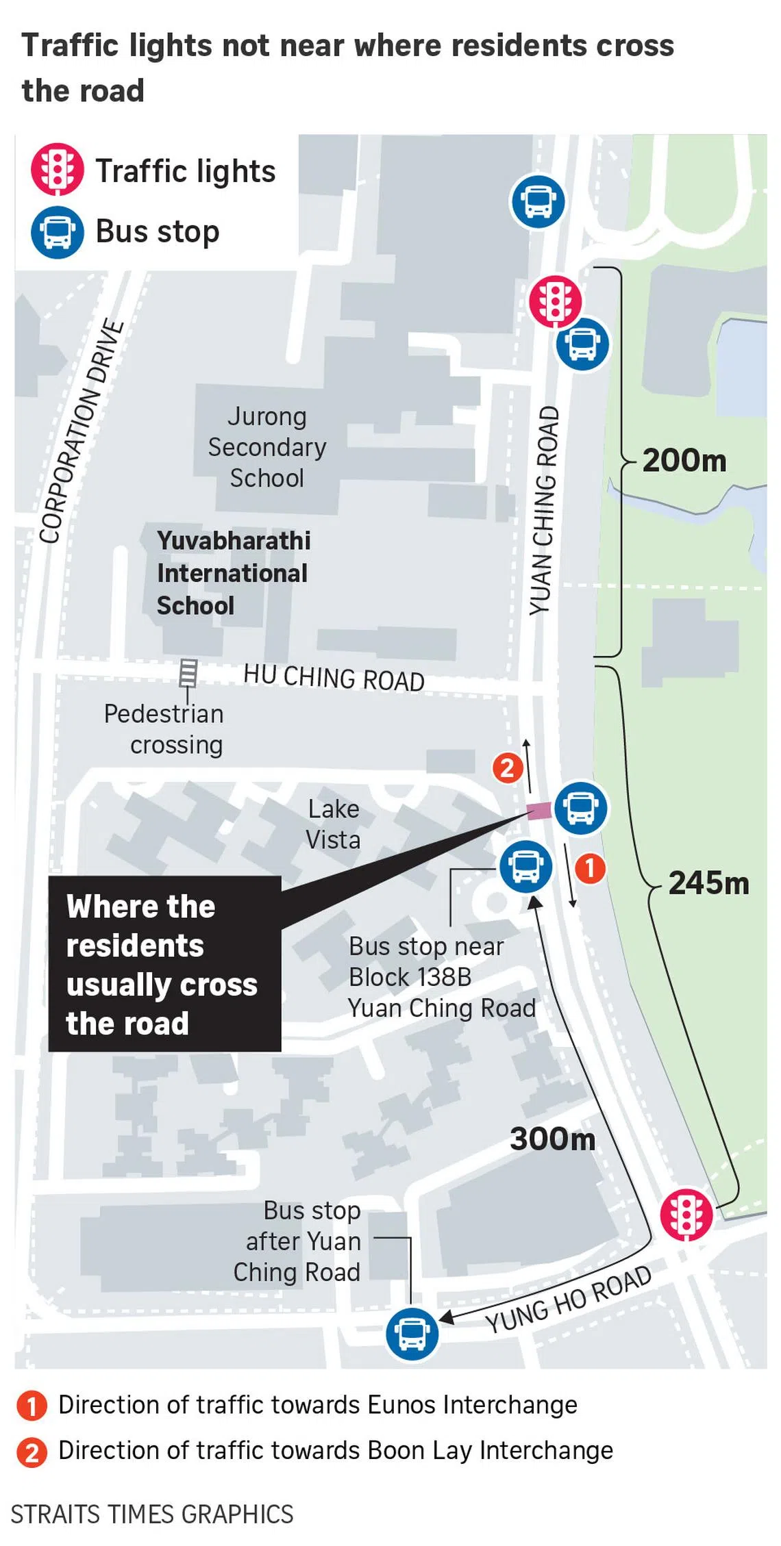 SINGAPORE - From her balcony in the Lake Vista estate in Jurong, Madam Nargis spied several near misses at Yuan Ching Road as students crossed the road to get to a bus stop.