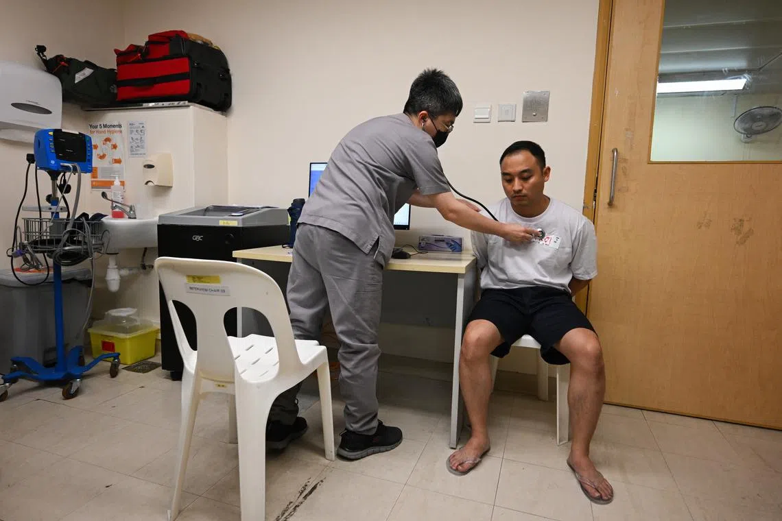 An inmate with existing medical conditions may be referred to public healthcare institutions. Those with medical conditions requiring close monitoring may be housed in a medical ward with other inmates at the CPC’s medical centre.
