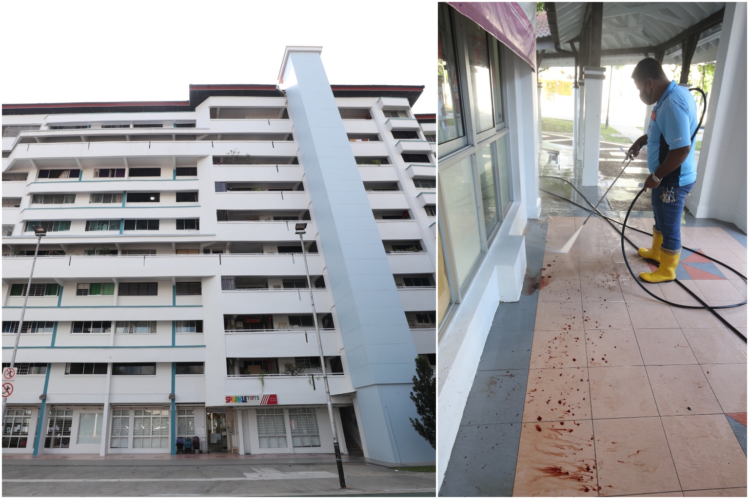 A woman was found lying motionless with multiple stab wounds at the void deck of Block 308 Jurong East Street 32.