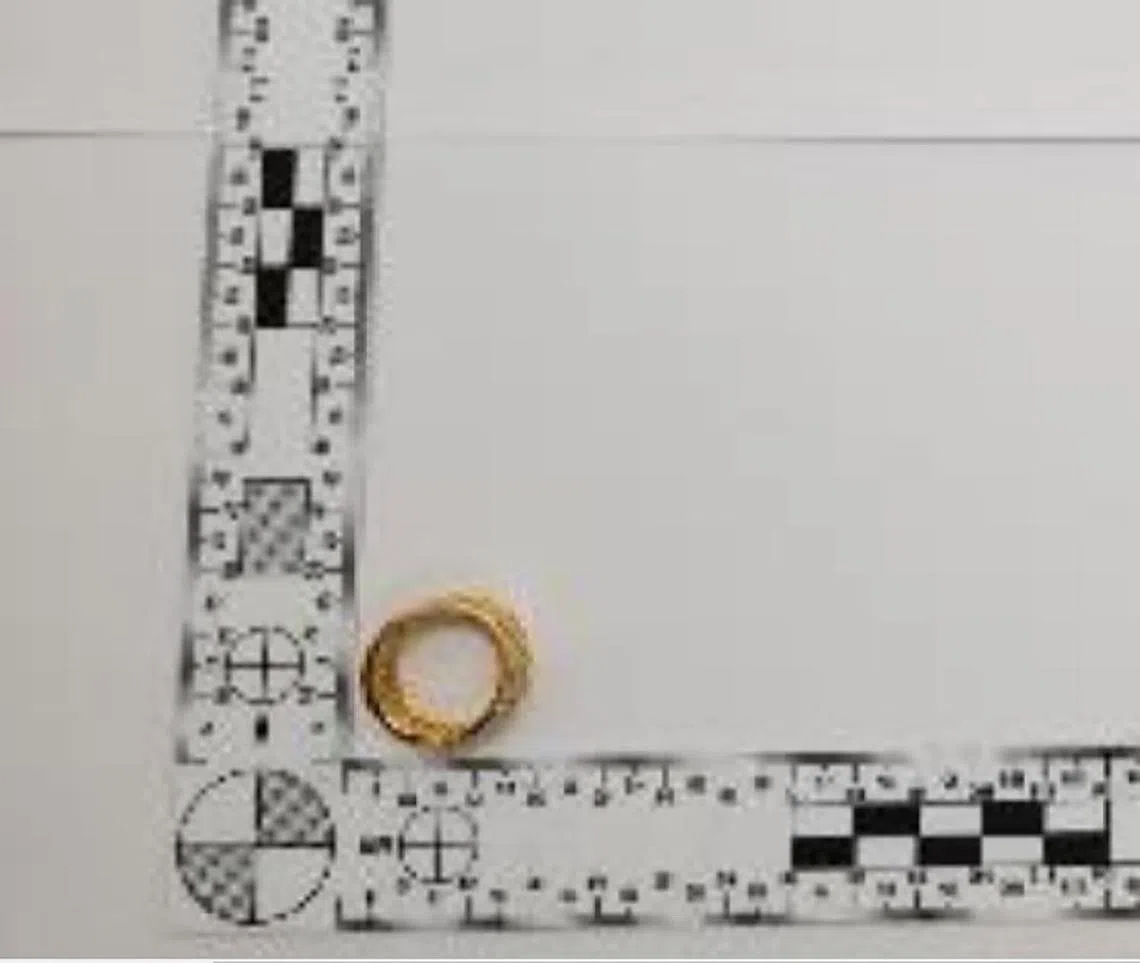 The gold ring that was stolen from a Maxi-Cash outlet in Queen Street near Rochor Road.
