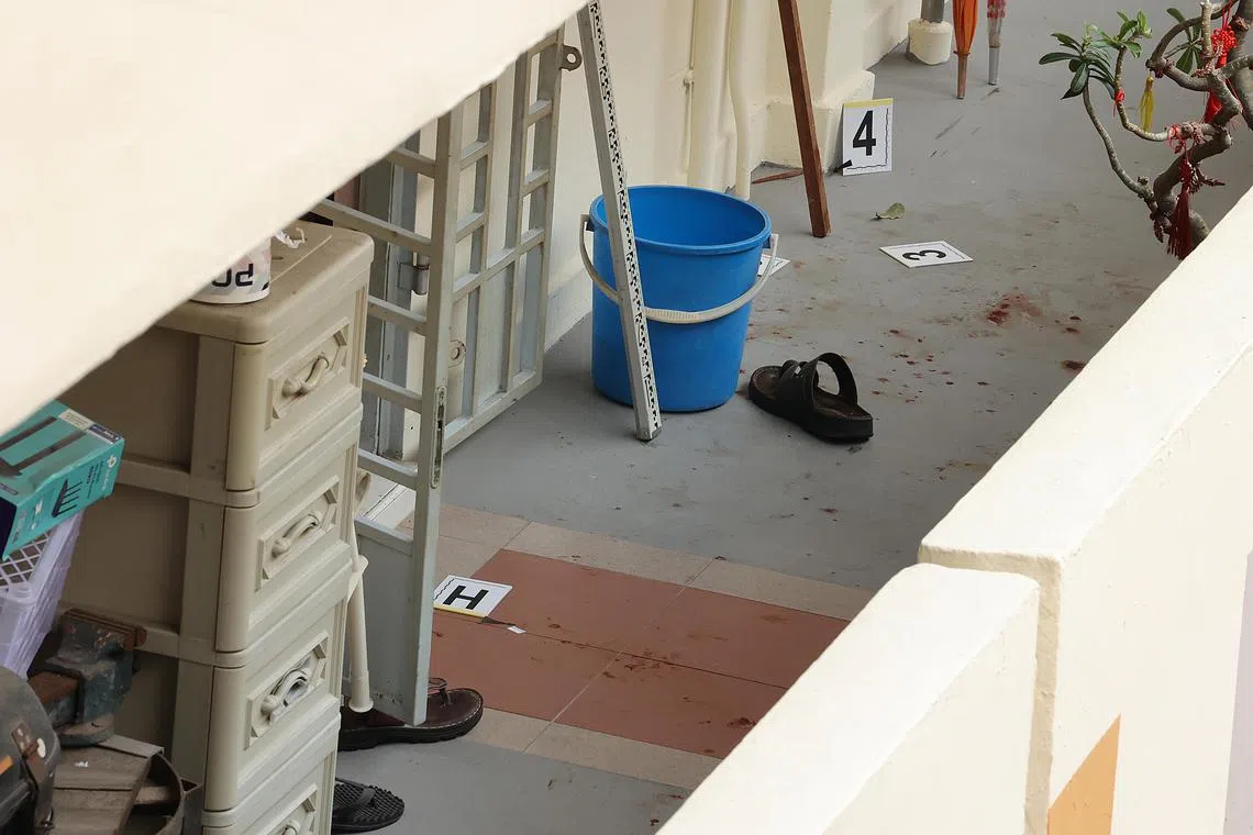 When he returned from church at around noon, he told her he saw a trail of blood from the first-floor lift lobby to the corridor outside their unit on the eight floor.