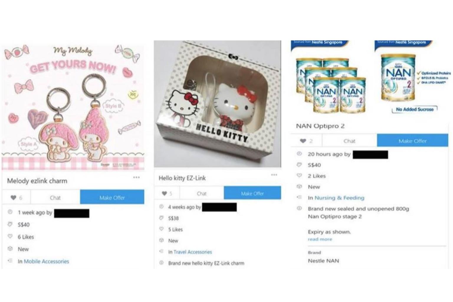 The products included baby care products and ez-link charms.