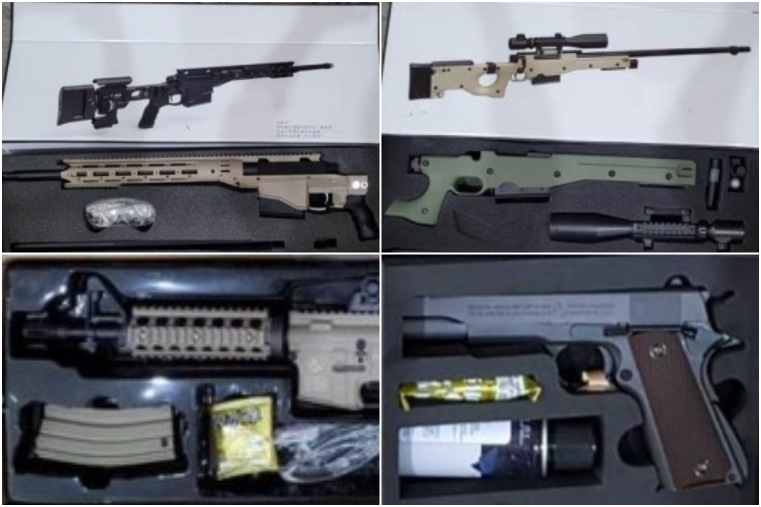 The guns are replicas that shoot non-metallic projectiles. Any gun that shoots pellets using compressed gas - including airsoft guns - are considered arms under the Arms & Explosives Act.