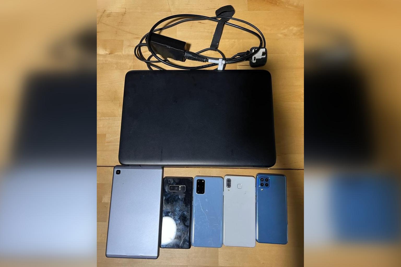 A laptop, a tablet and four mobile phones were seized during the arrest.