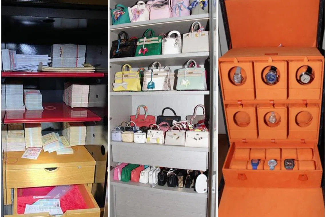 Cash, luxury bags and watches were seized by the police during the blitz.