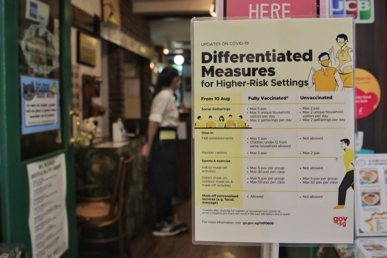 Since Aug 10, groups of up to five people who are fully vaccinated, or have recovered from or tested negative for Covid-19, can dine together in restaurants.