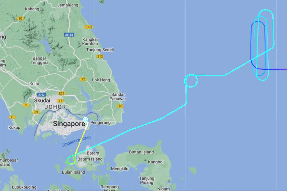 Flight data from tracking site Flightradar24 showed the plane made three loops over the South China Sea, before continuing on to Singapore.