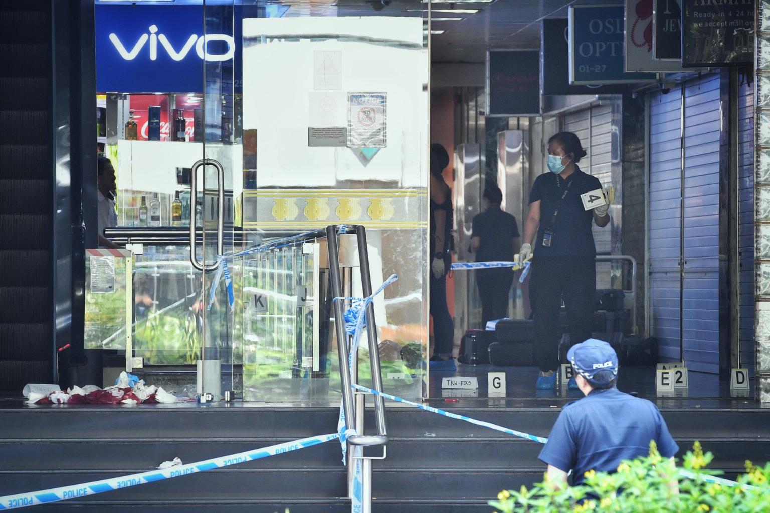 Closed-circuit television footage showed Mr Satheesh exchanging blows with some individuals before he stumbled in front of the building's glass doors. He appeared to be bleeding from his neck and died later that morning.