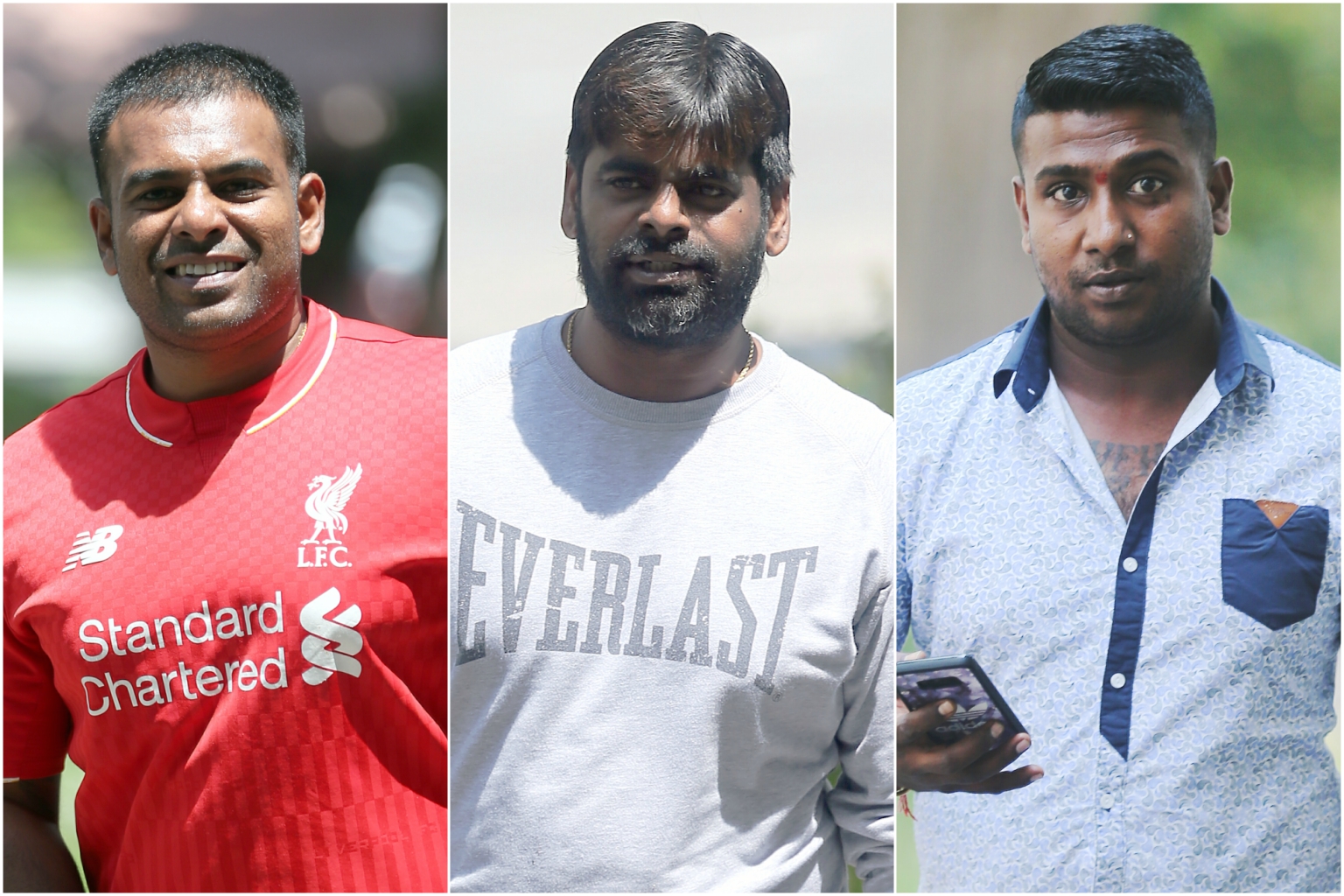 (From left) Ramachandra Chandramohan was sentenced to jail for a year and a week, and fined $8,000, while Gunasegaran Rajendran and Jaya Kumar Krishnasamy were fined $8,000 and $8,500 respectively.