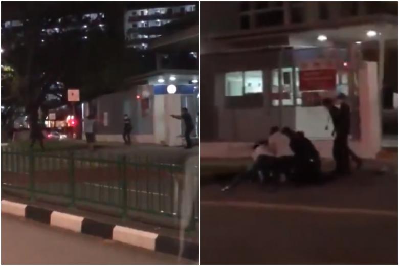 In an earlier statement, the police said: "(Officers) have arrested a knife-wielding man outside Clementi Police Division for his suspected involvement in the offences of voluntarily causing hurt with a dangerous weapon and criminal intimidation.